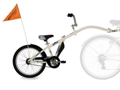 Why buy a tow bar and have all the connection problems and instability for your little one?Tagalongs are perfect for children aged 4 to 9 who can't manage those longer bike rides, or maybe haven't mastered riding just yet. They can also be used for children with balance issues with the addition of an Adams backrest. The most important part of a tagalong is the pivot, and we have the best system, with the Sync Link Pivot.New patented Sync Link Pivot design ensures smooth movement and ride for childSuperior design Front Splash GuardNew arm folds easily for compact storage / movementTrue quick release system for fast detachment from adult bikeAdjustable handlebars, up/down and rotation adjustments for maximum age range Uniquely fits oversized seat posts, upto 40mmHigher quality seat than most othersBeautiful white neutral paint schemeSafety Flag included20" wheel sizeHolds up to a 35kg riderRecommended for ages 4 - 9, rider must have inside leg of at least 52cm to pedal at lowestNo need f...